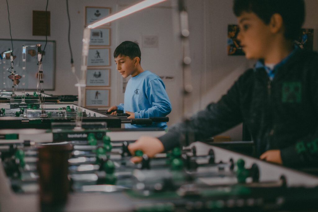 Tischfußball macht Spaß – und fördert Kinder ganzheitlich. Hier stärken Kinder spielerisch wichtige Fähigkeiten: